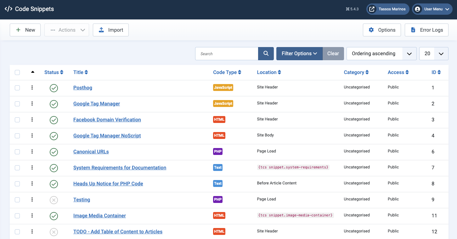 We are building a new Joomla extension that acts as a code snippet manager. It will let site owners create, organize, and inject snippets (HTML, CSS, JS, PHP, plain text) into key locations like head, body, footer, and article positions (after title, before content, after content).