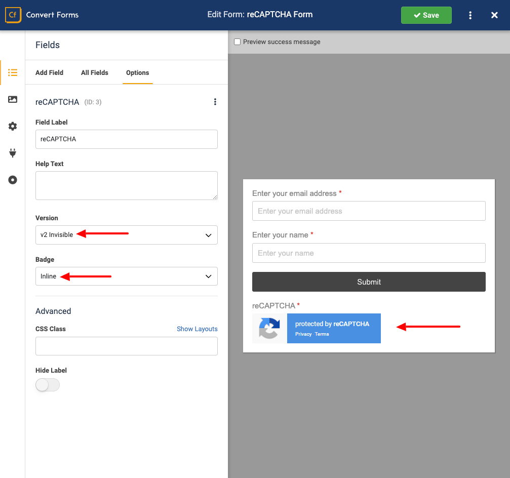 Finally, after all the changes save your work. Your reCAPTCHA Invisible field is ready!